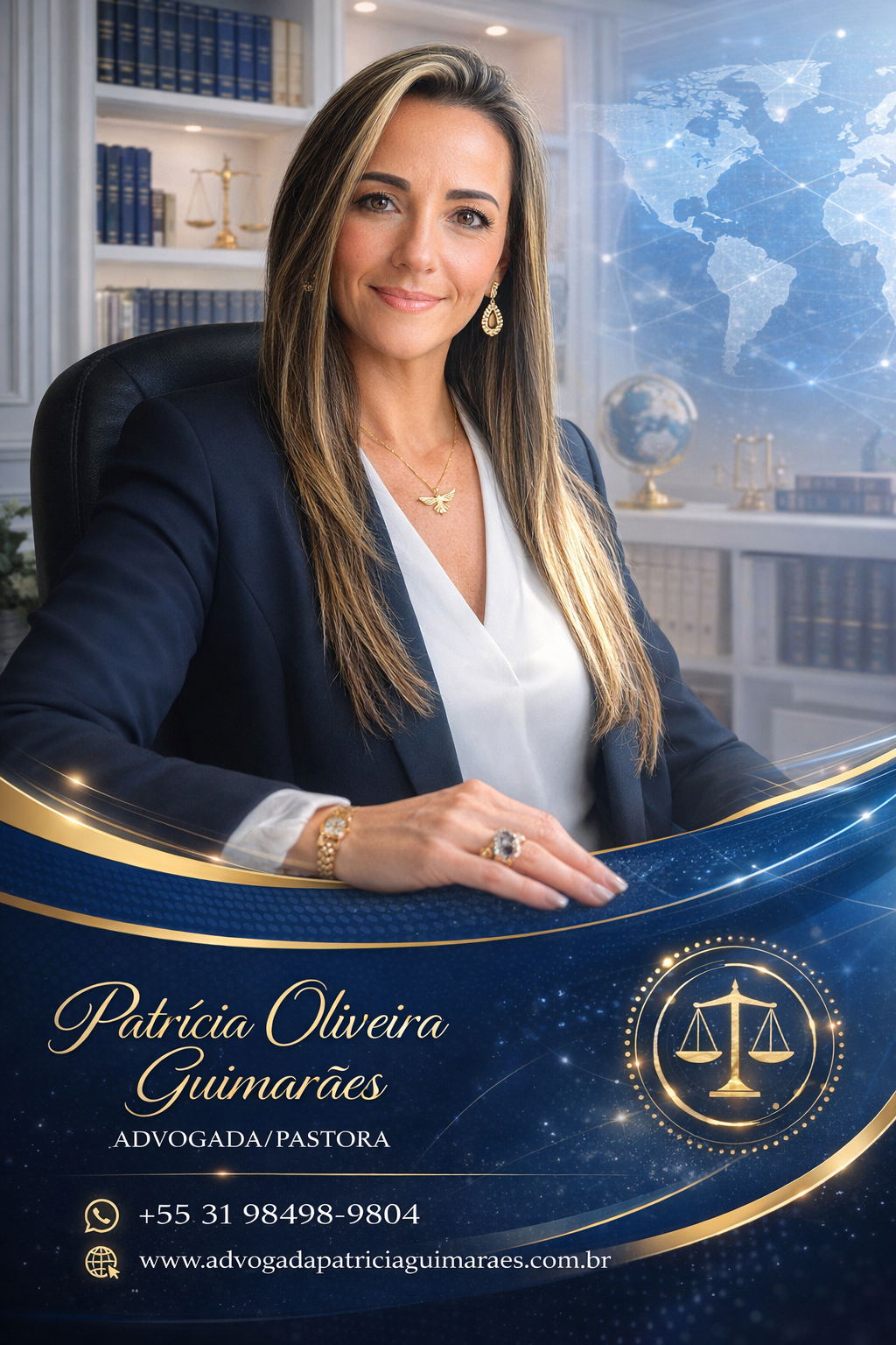 Dra. Patrícia de Fátima de Oliveira Guimarães é advogada com mais de 25 anos de experiência, com atuação consolidada em Direito do Trabalho, Direito Previdenciário, Direito Internacional de Imigração e Direito Religioso voltado a Igrejas Protestantes. Possui duas graduações, duas pós-graduações e diversos cursos de capacitação no Brasil e no exterior, integrando formação jurídica e teológica em sua atuação como advogada e pastora.